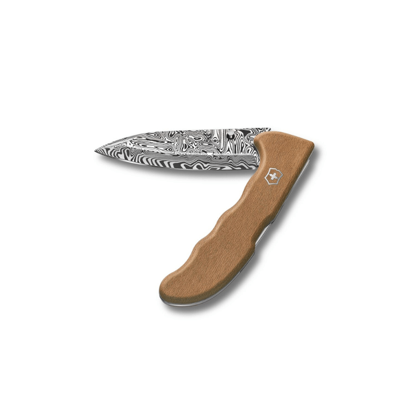 Die Evoke Wood Damast Limited Edition 2026 kombiniert moderne Präzision mit jahrhundertealter Schmiedekunst. Die grosse Klinge ist aus 115-lagigem Damasteel® mit einzigartigem Gysinge-Muster gefertigt, der für seine seine aussergewöhnliche Stärke bekannt ist. Dazu kommen nachhaltig bezogene Platanenholz-Schalen. So wird jedes Messer zum Unikat. Weltweit auf 7.000 Exemplare limitiert verkörpert die Edition Schweizer Design, präzise Handwerkskunst und bewährte Verlässlichkeit von Victorinox.