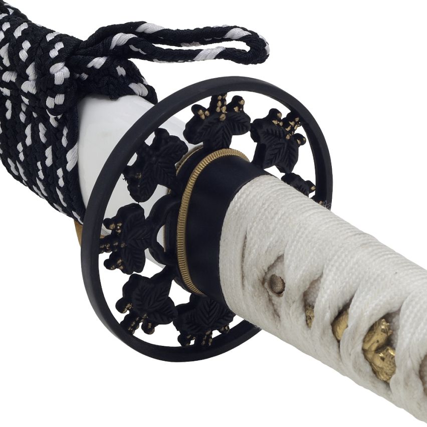 - Alle Zierrate (Tsuba, Fuchi, Menuki, Kashira) sind aus Metall.