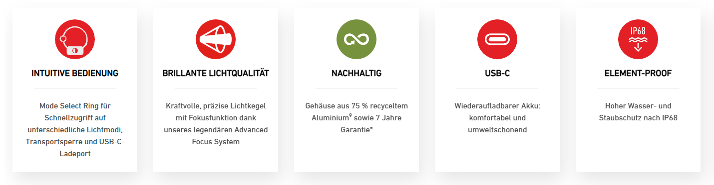 - Extrem robust: Hoher Staub- und Wasserschutz (IP68), abnehmbare Schutzkappen für zusätzlichen Schutz und 5 Jahre Garantie (mit Registrierung bei LedLenser 7 Jahre!)