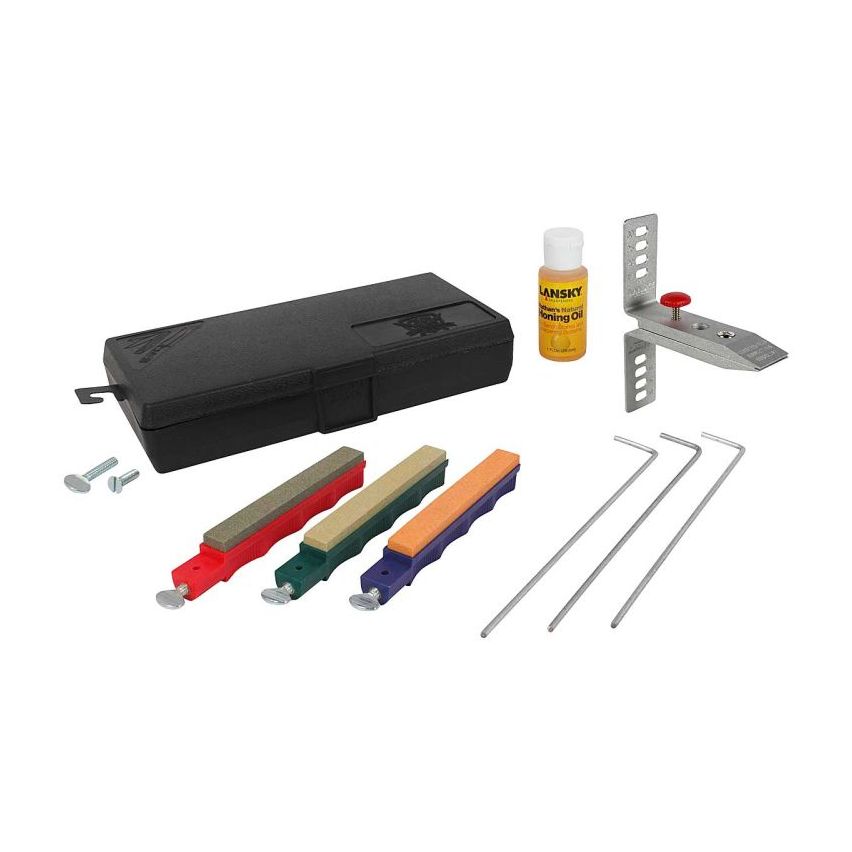 Lansky Schärf-Set, mit 3 Abziehsteinen, grob, mittel, fein inklusive Klammer, Führungsstäbe, Schleiföl, Transportbox